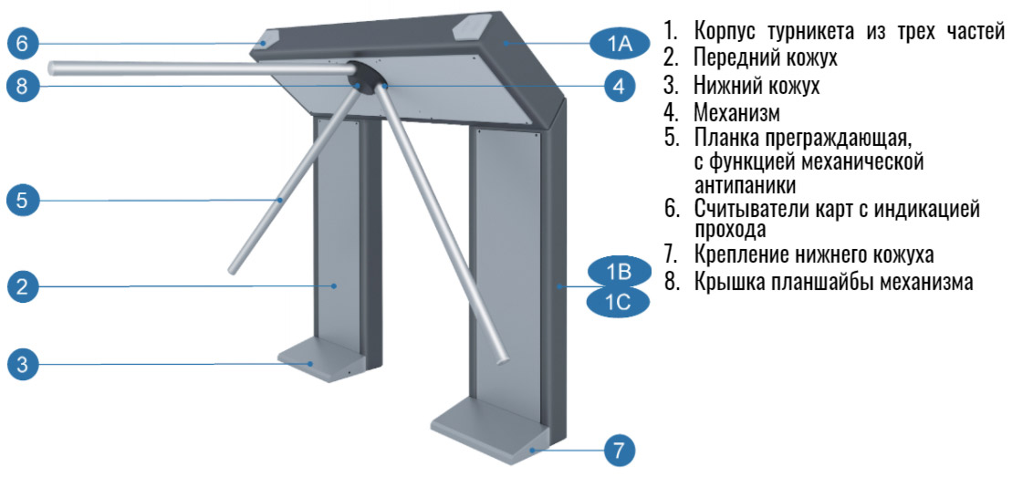 Тип корпуса турникета | Однопроходной, Тумбовый, Напольный |