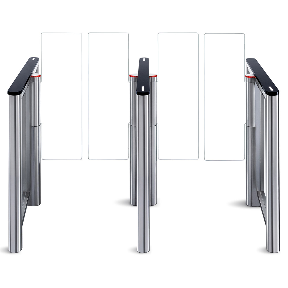 Увеличенная ширина прохода позволяет организовать проезд маломобильных групп населения, а также дополнительный выход в случае чрезвычайной ситуации. При проходе створки турникета распахиваются.