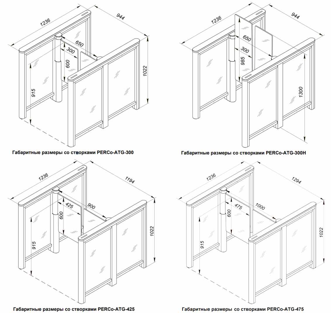 - со створкой PERCo-AТG-300H: 1236×944×1300