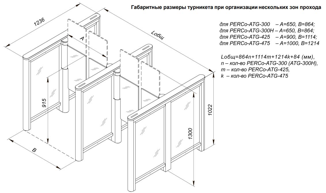 Общая ширина турникетов при организации нескольких зон прохода рассчитывается по формуле: