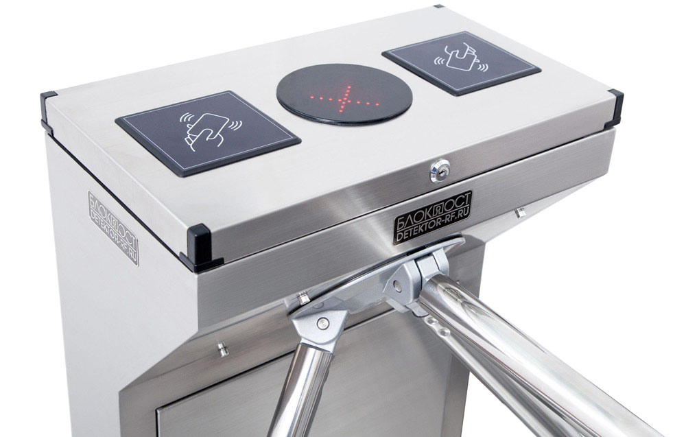 Надежный механизм гарантирует длительную безотказную работу турникета при интенсивной эксплуатации. Контроль доступа через проходную систему осуществляется путем считывания карт, либо пультом управления.