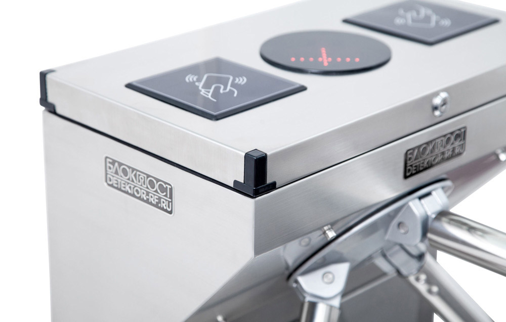 Турникет ТРД 600 торговой марки БЛОКПОСТ можно оснастить устройствами идентификации пользователя: идентификатором лица, сканером отпечатка ладони/пальца, считывателем штрих-кода, картоприёмником. Контактный считыватель карт входит в базовую комплектацию турникета. Организация проходных с использованием устройств идентификации позволит наиболее быстро и точно определить возможность допуска человека через досмотровую зону без участия сотрудников охранной системы.