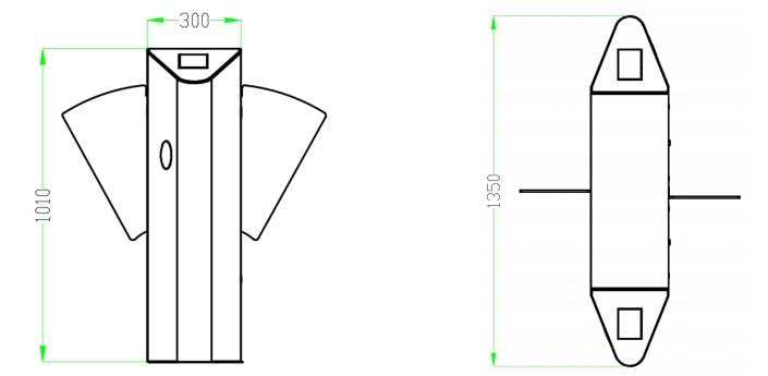 • Габариты: L=1350, W=900 (тумба 300), H=1010 мм