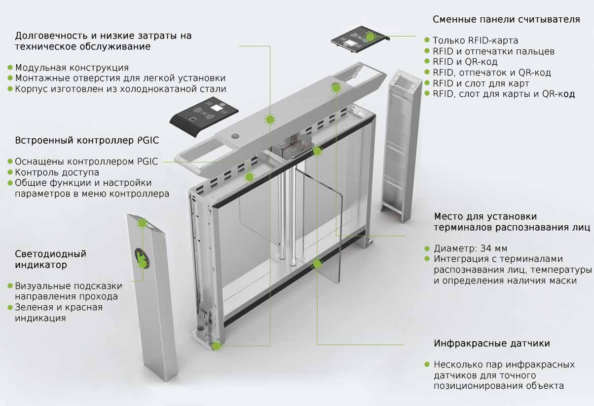 Тип корпуса турникета | Двухпроходной, Тумбовый, Напольный |