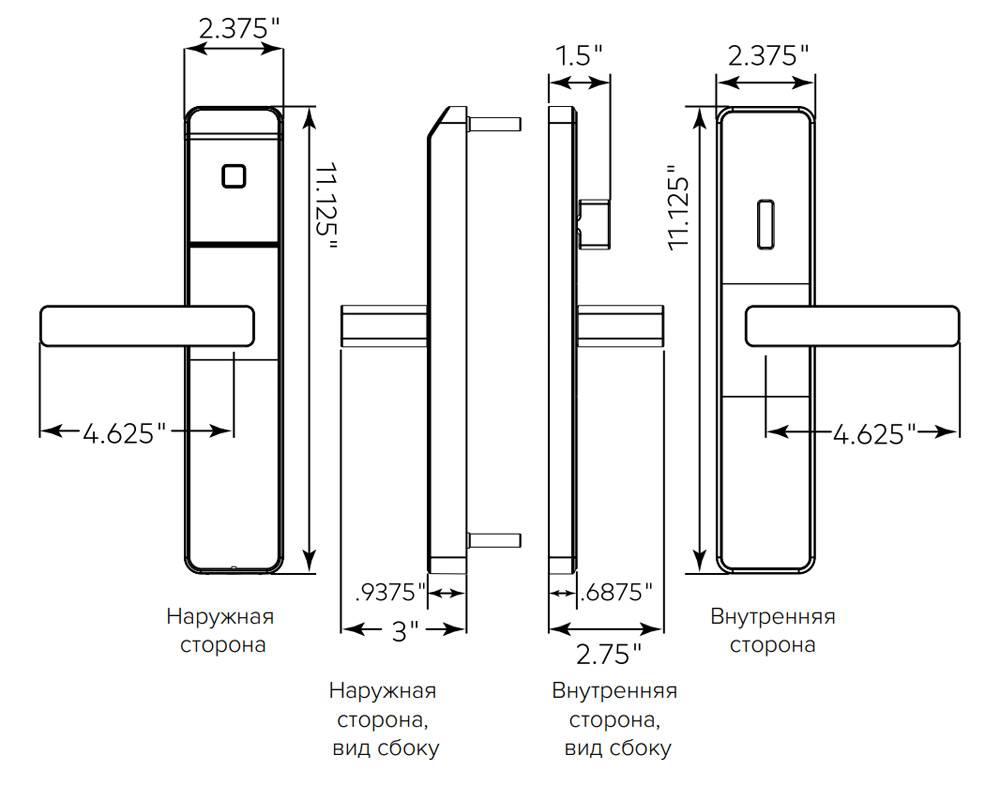 • комплект 1 и 2 Confidant RFID можно использовать с врезными замками сторонних производителей;